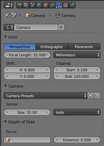 Camera settings in Blender to adjust
