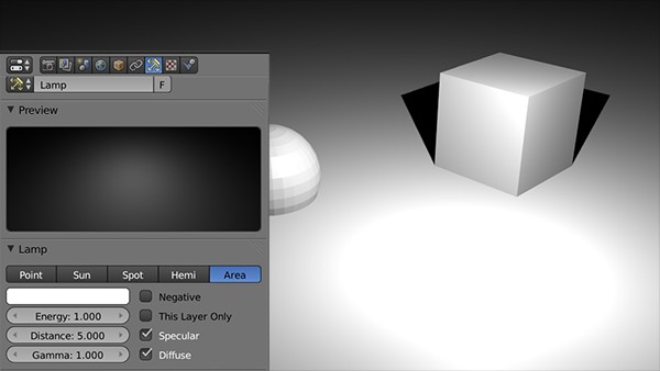 - Area Light The Area Light emits similar to the Point Light in a certain Radius around the light source. In this case, the maximum light is distributed, but flat and not bundled in one point. This propagation of planar light you can change in the Gamma value in the settings.