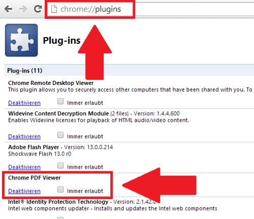 - Enter the top in the address bar "chrome:plugins" and confirm the entry with the [Enter] key.