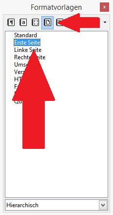 - Click on the fourth category of "page templates" and select the Option "First page" with a double click (see image).