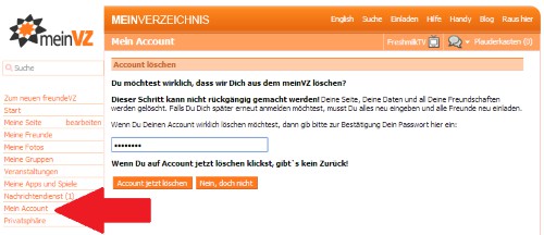 - Alternatively, you can give your cancellation by E-Mail. Just send a Mail with the request of cancellation to abmeldung@meinvz.net.