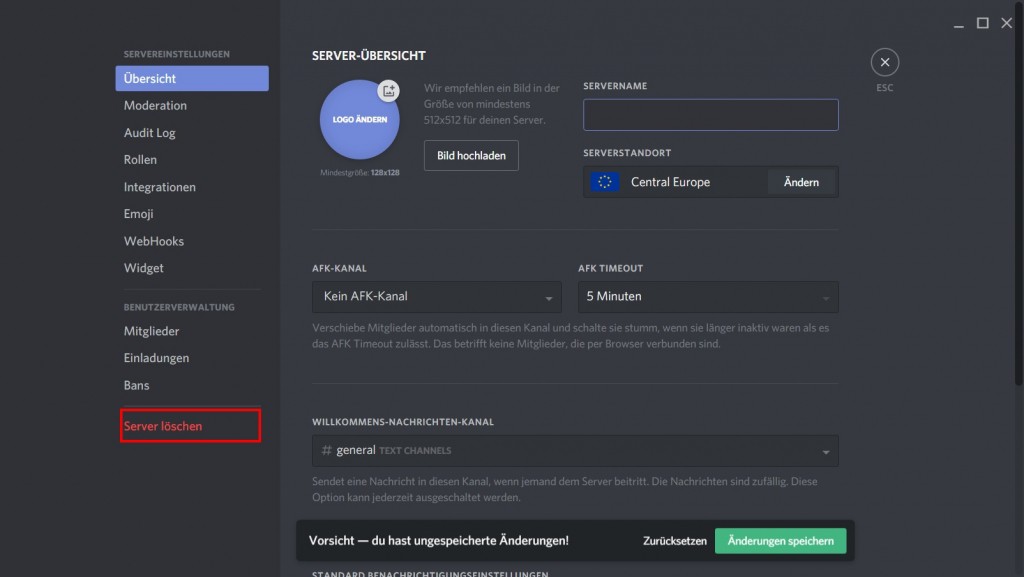 - Click within Discord with the right mouse button on the icon of the server you want to delete.
