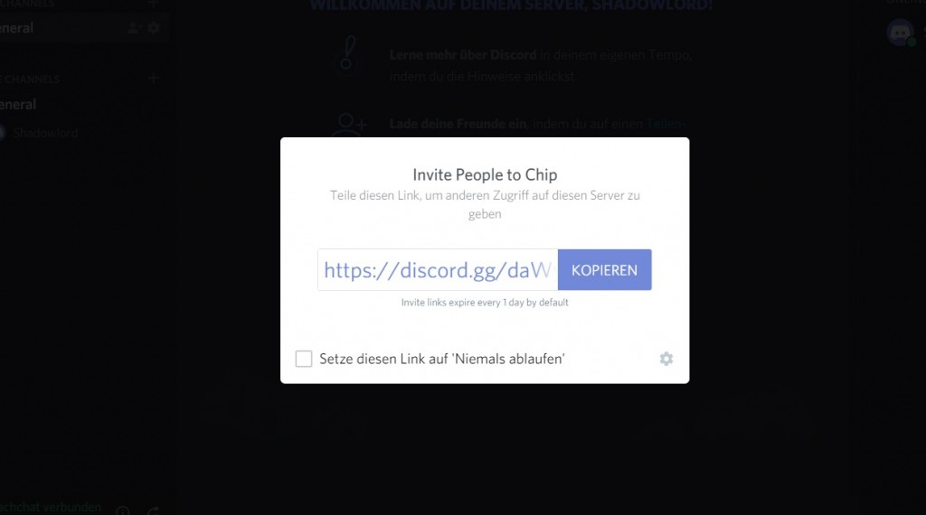 - Discord now generates a Link that you can distribute to your friends. This will get the address to access the Server.