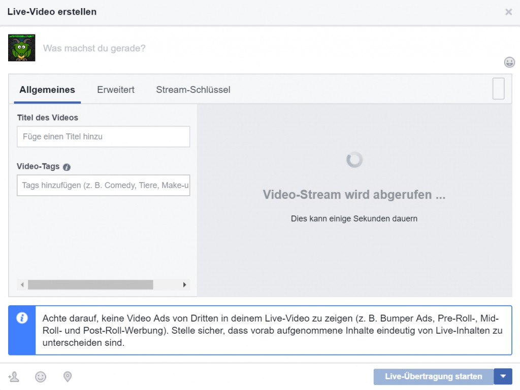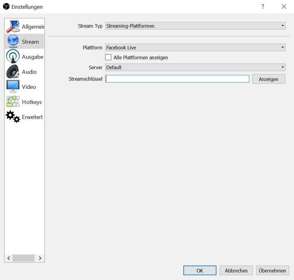 Facebook: Stream-key for OBS