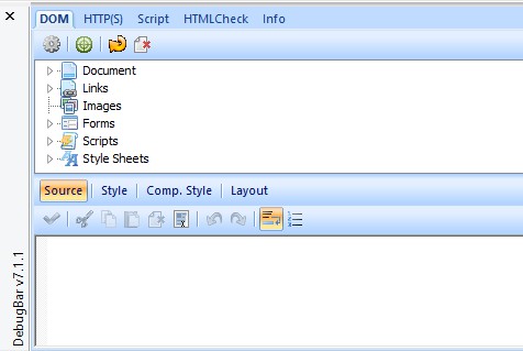 - The DebugBar Toolbar, which appears at the top of the Browser, provides quick access to practical functions such as a color picker, a screenshot function, access to the source code etc. Like all other Toolbars, this one can also easily show and hide.