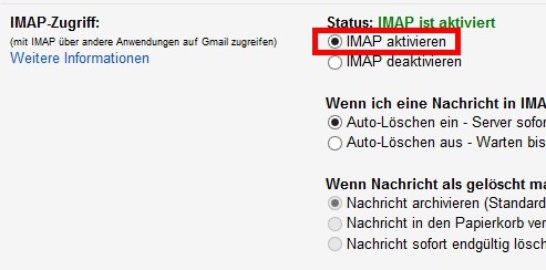 - Click on "forwarding and POP/IMAP". After that, select "enable IMAP" and confirm with the Button "save Changes".