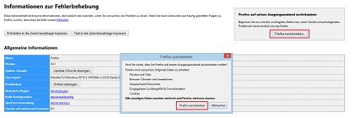 - Click in the new Tab on "reset Firefox" and then on "reset Firefox".