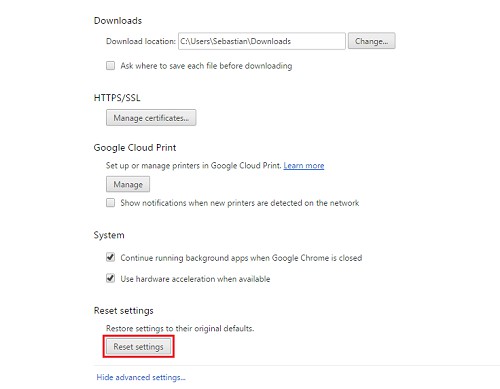 - You can now scroll in the Settings to the bottom and click "Show advanced settings". Scroll all the way down again and select "Reset settings". Confirm with "Reset".