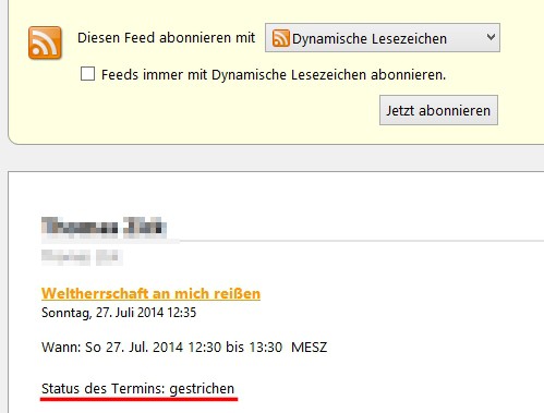 - You can now see the XML Feed page of your calendar, on the deleted and hidden events are displayed. In Chrome, you are only confusing the XML Code displayed, better are Firefox, Opera , or Internet Explorer.