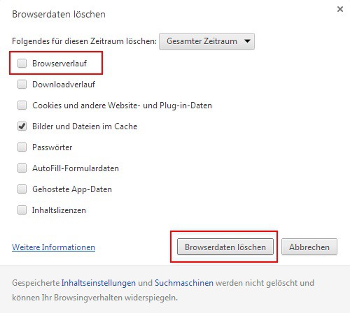- Now you can delete searches and pages that you have accessed manually, by clicking the box in front of the URL in the Checkbox and the "remove Selected items".