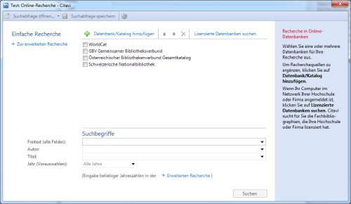 - Under "Research" you can search for other titles. First, you need to add with a click on "database/catalog" a new catalog.