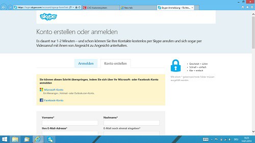 You do not have a Skype account, click in each Version of the Software in the logon dialog on the "create account". You will be automatically redirected in the Browser. Here you have the option "to link a Skype" with "Microsoft" or "Facebook"account. You don't want to give so much of yourself, you can also create a new Skype Account in the same window. Please note the fields with the asterisk - only these are required, your birthday or place of residence do not need to specify mandatory. Be sure to remove the hook, with which you agree, that "Skype" will not send you E-Mails allowed to send. Directly below that, you type in a Captcha and confirm the information. Your user name is not yet assigned, you are registered and can log in in the program or in the App.