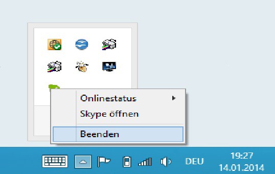 - You want to exit the program, click on "Skype" and then click "Close". In the rule, but only closed the window, and "Skype" still running. You see, therefore, in the task bar, you will find there the little green Logo and click with the right mouse button. Click here to "Quit" the program closes permanently.