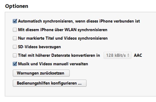 - Under the tabs "music", "movies" or "Apps" you can also enable the automatic synchronization.