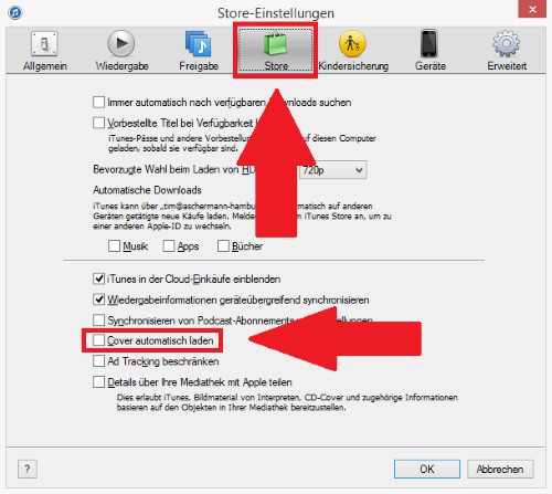 - You can switch to the tab "Store" and activate the Option "automatic loading Cover pictures".