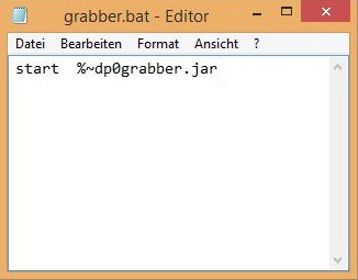 - You write in the first line "start %~dp0XXX.jar" (without the quotation marks). Instead of "XXX" enter the name of the corresponding JAR-file.