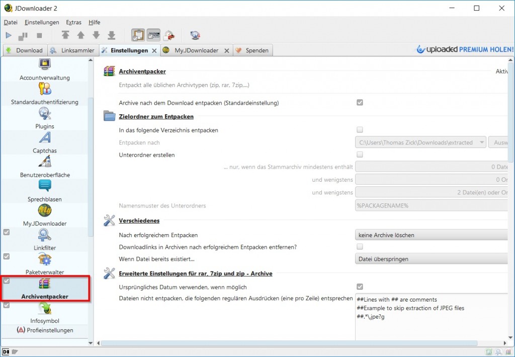 - You can unpack the files, of course, simply manually - if there is no error in the downloaded archive. You can use a program such as Bandizip or 7-Zip. You open the jDownloader then the settings and then remove the checkmark next to "archive unpackers".
