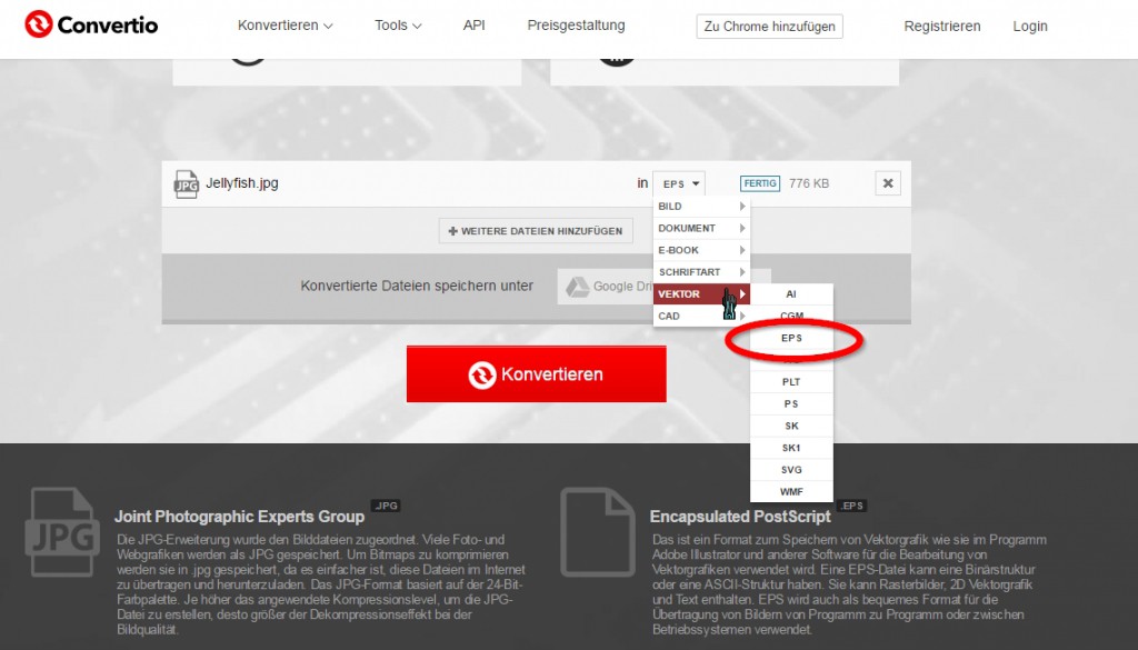 You want to install an additional program on your Computer, you can have your JPG graphics online EPS, Format convert: