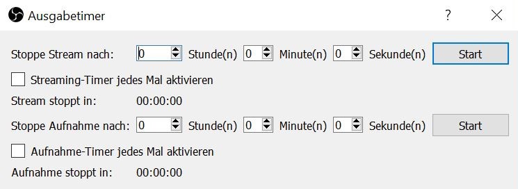 - Here you can set the time after which the recording or of the Stream with a Countdown should end.