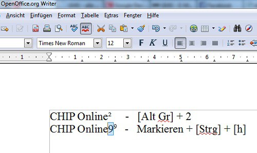 - High-paying [2] and high number [3]: these two Numbers can you write with the [Alt Gr] + [2] and [3] in OpenOffcie.
