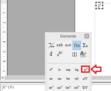 - In the Editor, replace the elements "". You want to write, for example, two high-five, select the Code "2^{5}". Here you can also enter more complex formulas.