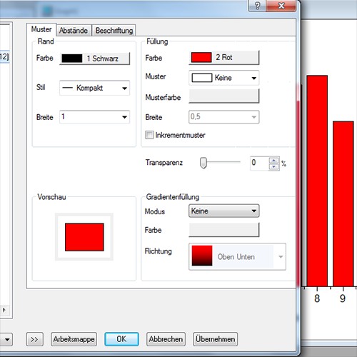 - As in the point graph, customize the Design, by the bar clicking with the left and then right and go to "settings". So you can gradients, among other things, color and the spacing between the beams to define.