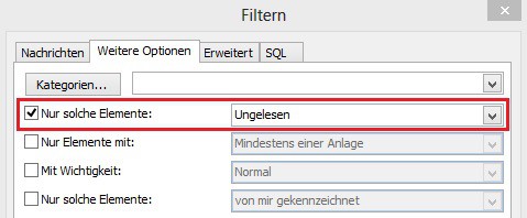 - In the selection box behind it, must now stand "Unread" so that only the unread E-Mails appear in the Inbox and all read Mails are hidden.