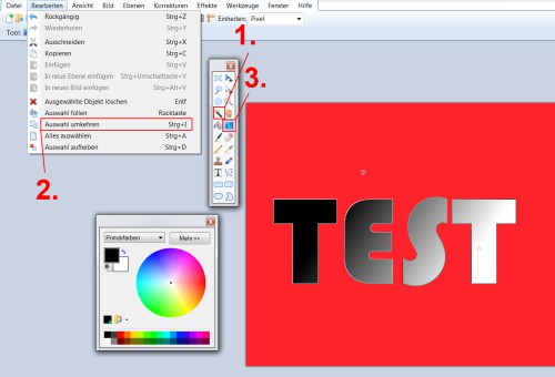 - If you now edit the "invert selection" (point 2), is only the lettering highlighted. Parts of the lettering should not have been marked, you can help out, by holding down [Ctrl] while you click with the magic wand on the corresponding part.
