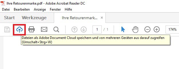 - For the first Time, you must create an Account with Adobe, all PDF files are stored. Later, the PDFs will be uploaded, but clicking on the Cloud icon immediately.