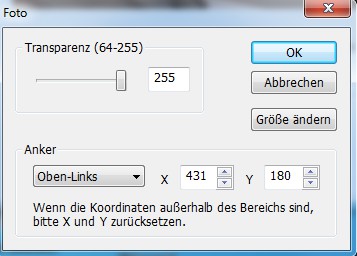 - There is a window in which the transparency of the image can specify. Here you can either change the value 255 to manually move or step the Slider to your desired transparency. Save the changes via "OK".