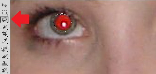 Step 1: Red eye with the polygonal Lasso tool to mark