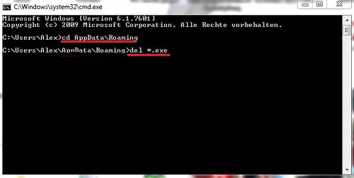 - Now enter "cd c:\users\username\appdata\roaming". "Username" replaced by your user name (for example, "Alex").