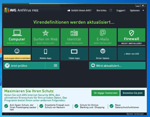 - After the Installation, you should run the Update check via the corresponding Button in the main menu to the latest virus download definitions.