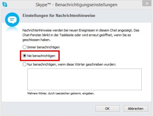 Notifications in Skype for Windows off