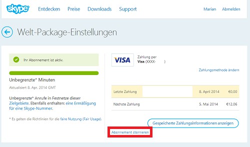 A Skype subscription you can cancel up to three days prior to the expiry of the booked period. The not-yet-vertelefonierten minutes you have until the end of the subscriptions available: