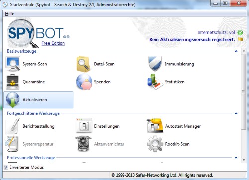 This practice tip was carried out with the Version 2.1.21 under Windows 7. What you can do if SpyBot the error message "ws2_32.dll missing" issues, read this practical tip.