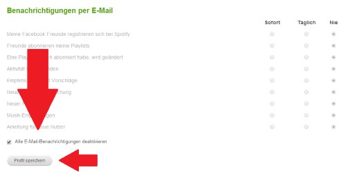 Spotify: E-Mail notifications off