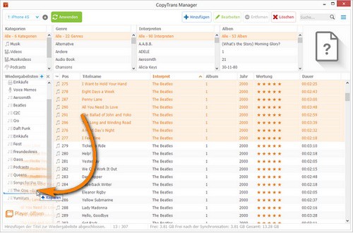 Add music, works by Drag-and-Drop. Install and open CopyTrans Manager and connect your iPhone to the Computer.