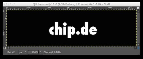 - Create a new image with a black Background. In our example, we have chosen the size is 640 x 180 px. The following settings are adjusted to this size. Write your Text with a text size of 75 px, and the font color to white.
