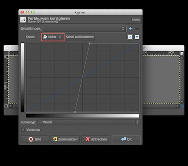 - Go back to the mosaic level. There, navigate to "colors -> color to alpha" and select black. So the white lines remain. In the menu "colors -> curves" select the top left “Alpha” and apply the curve after the presentation of the Screenshots on the image.