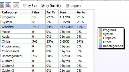 - For a better view provides you with Xinorbis the results in pie charts is.