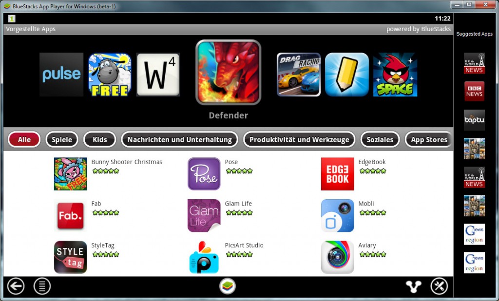 The Bluestacks App Player is the most famous Android Emulator, it currently is. This uses the unique "LayerCake"technology, through which it is possible that Android will be emulated Apps without an external "virtual Desktop" and run.