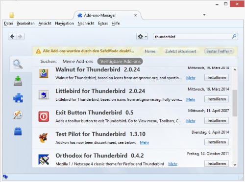 - Alternatively, you can use the Addons on the website of Thunderbird, download and install it manually. To do this, click in point 2 in addition to the search line on the Gear icon and click on "Addon install from file".