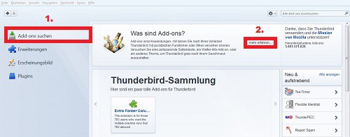 Click now to the beginning of the description above, in the Thunderbird menu bar, go to tools/Addons. Then you need to do the following: