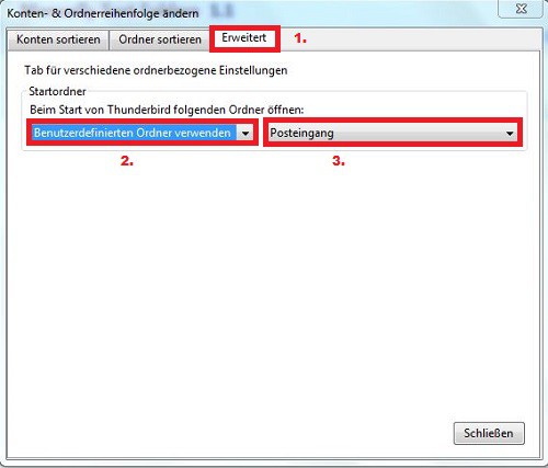 - Now you can select the check box next to any folder to open at startup of Thunderbird (see image item 3).