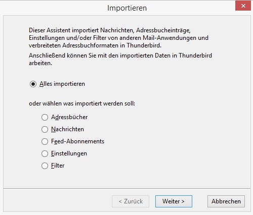- Should the Import not work correctly, you must first make Outlook the default program set. Afterwards, you can select Thunderbird as the default.