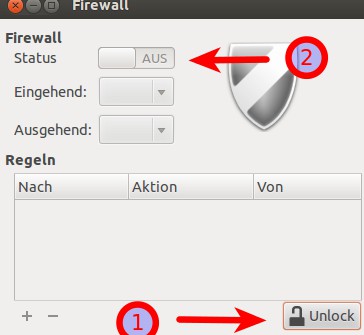 First, you have to log in with a click on "Unlock" with Root-Rights. After that, you enable the UFW, by setting the "Status"switch.