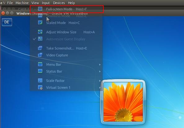 If you want to use Virtualbox in full-screen mode, you can do this easily via the menu button or through a Shortcut: