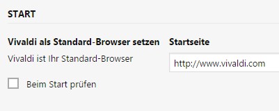 Vivaldi: the program as a default Browser set