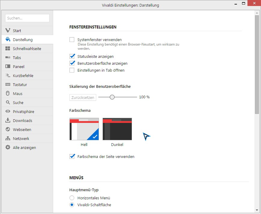 Although Vivaldi is based, such as Google Chrome, to Chromium - Themes from the Chrome Web Store will not work, however. The presentation of Vivaldi can influence to a small extent.